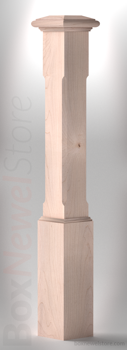 Box Newel Store Classic Soft Maple Box Newel, SFI Classic Cap with Cove, Chamfor Panels, Loose Basewrap with Cove
