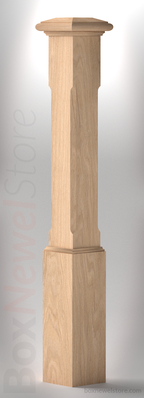 Box Newel Store Classic White Oak Box Newel, SFI Classic Cap with Cove, Chamfor Panels, Loose Basewrap with Cove