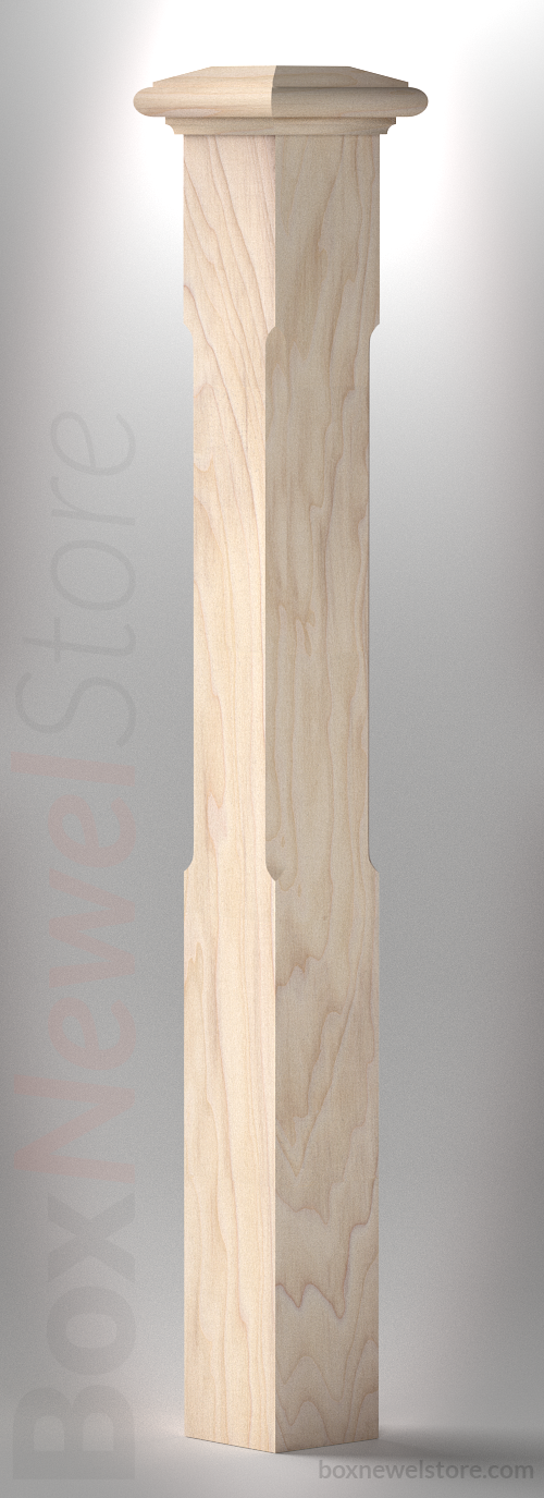 Box Newel Store Classic Paint Grade Box Newel, SFI Classic Cap with Cove, Chamfor Panels