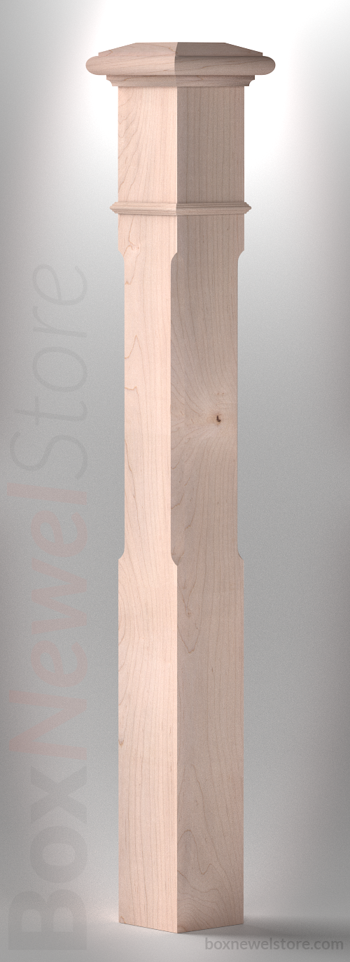 Box Newel Store Classic Soft Maple Box Newel, SFI Classic Cap with Cove, Chamfor Panels, Pencil Mold Trimband