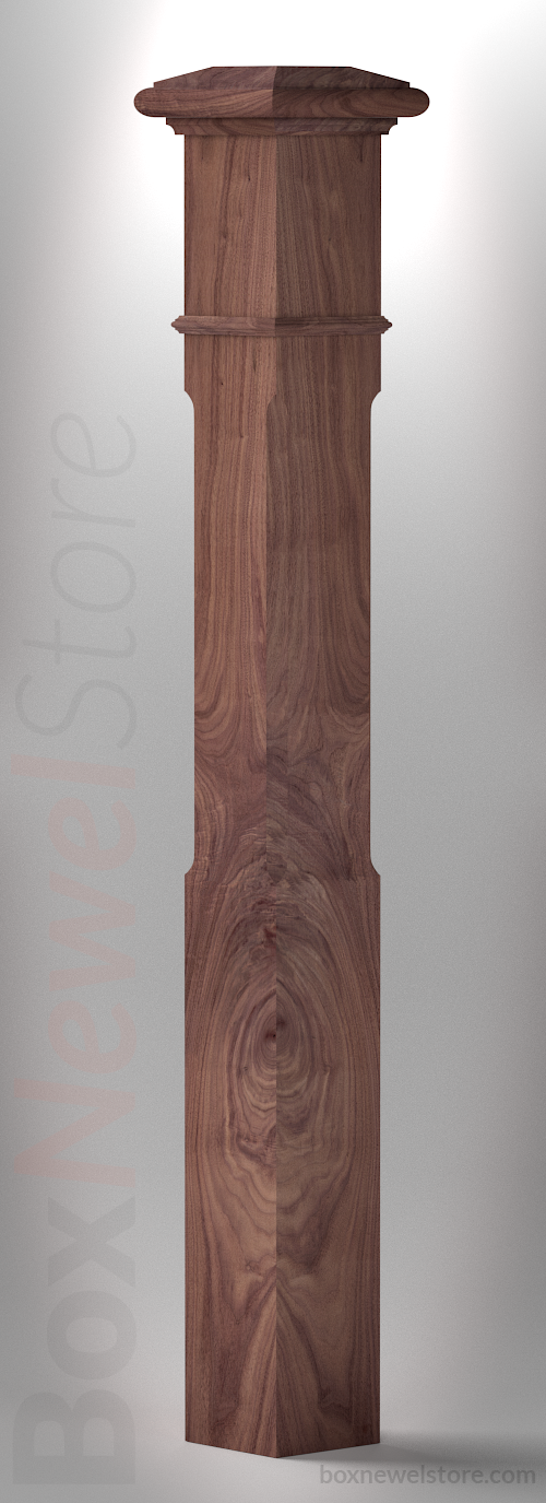 Box Newel Store Classic Walnut Box Newel, SFI Classic Cap with Cove, Chamfor Panels, Pencil Mold Trimband