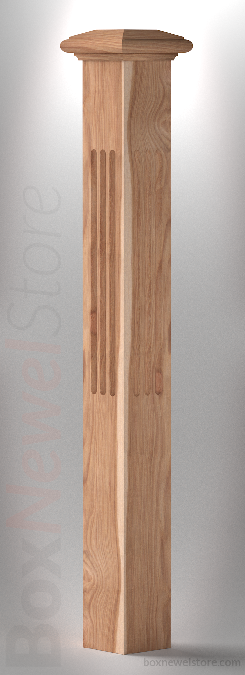 Classic Hickory Box Newel, SFI Classic Cap with Cove, Flute Panels