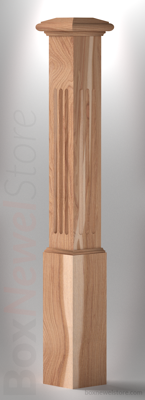 Box Newel Store Classic Hickory Box Newel, SFI Classic Cap with Cove, Flute Panels, Loose Basewrap with Cove