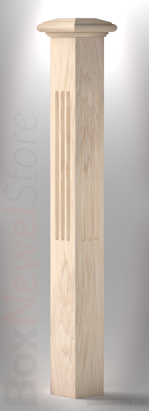 Classic Paint Grade Box Newel, SFI Classic Cap with Cove, Flute Panels