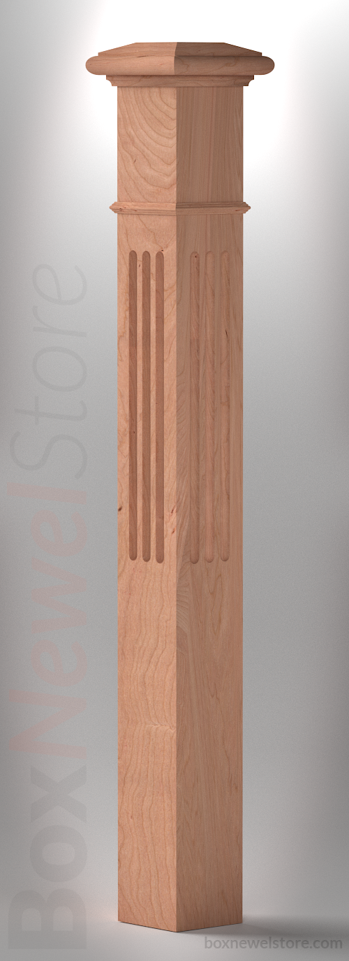 Classic Cherry Box Newel, SFI Classic Cap with Cove, Flute Panels, Pencil Mold Trimband