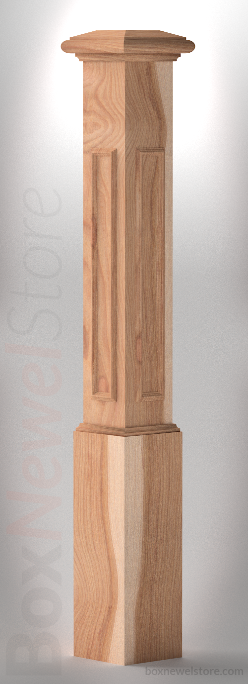 Box Newel Store Classic Hickory Box Newel, SFI Classic Cap with Cove, Lower Planton Panels, Loose Basewrap with Cove