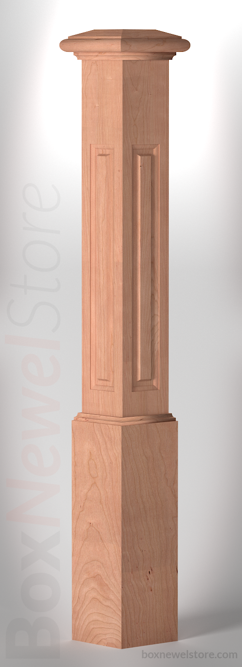 Box Newel Store Classic Cherry Box Newel, SFI Classic Cap with Cove, Lower Raised Panels, Loose Basewrap with Cove