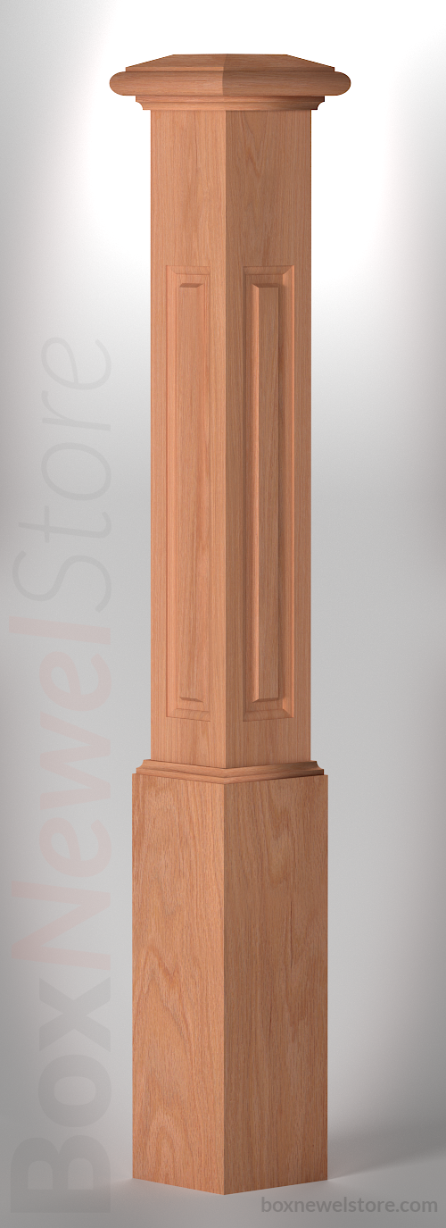 Box Newel Store Classic Red Oak Box Newel, SFI Classic Cap with Cove, Lower Raised Panels, Loose Basewrap with Cove