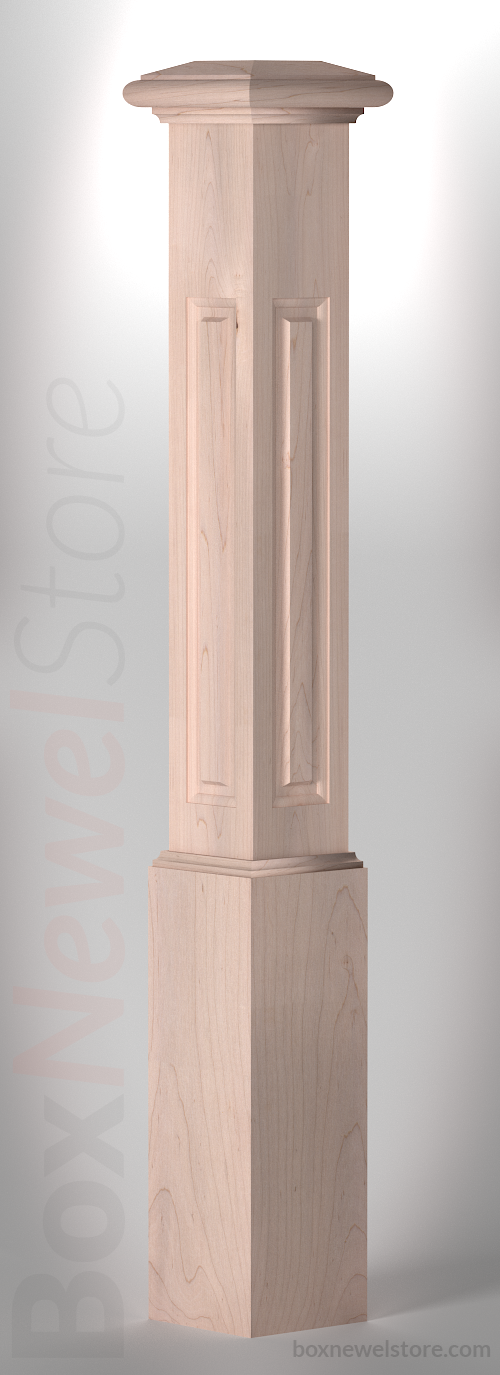Box Newel Store Classic Soft Maple Box Newel, SFI Classic Cap with Cove, Lower Raised Panels, Loose Basewrap with Cove