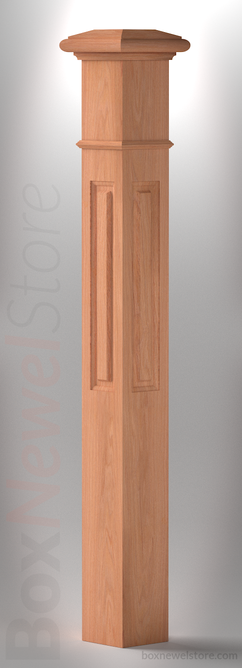 Box Newel Store Classic Red Oak Box Newel, SFI Classic Cap with Cove, Lower Raised Panels, Pencil Mold Trimband