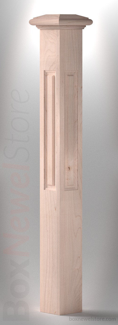 Classic Soft Maple Box Newel, SFI Classic Cap with Cove, Lower Raised Panels