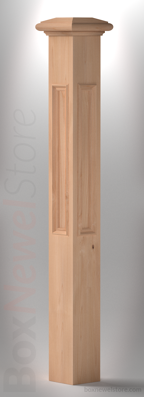 Box Newel Store Classic Clear Alder Box Newel, SFI Classic Cap with Cove, Lower Recessed Panels with Panel Cap