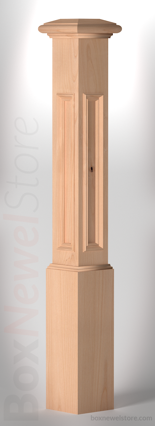 Box Newel Store Classic Clear Alder Box Newel, SFI Classic Cap with Cove, Lower Recessed Panels with Panel Cap, Loose Basewrap with Cove