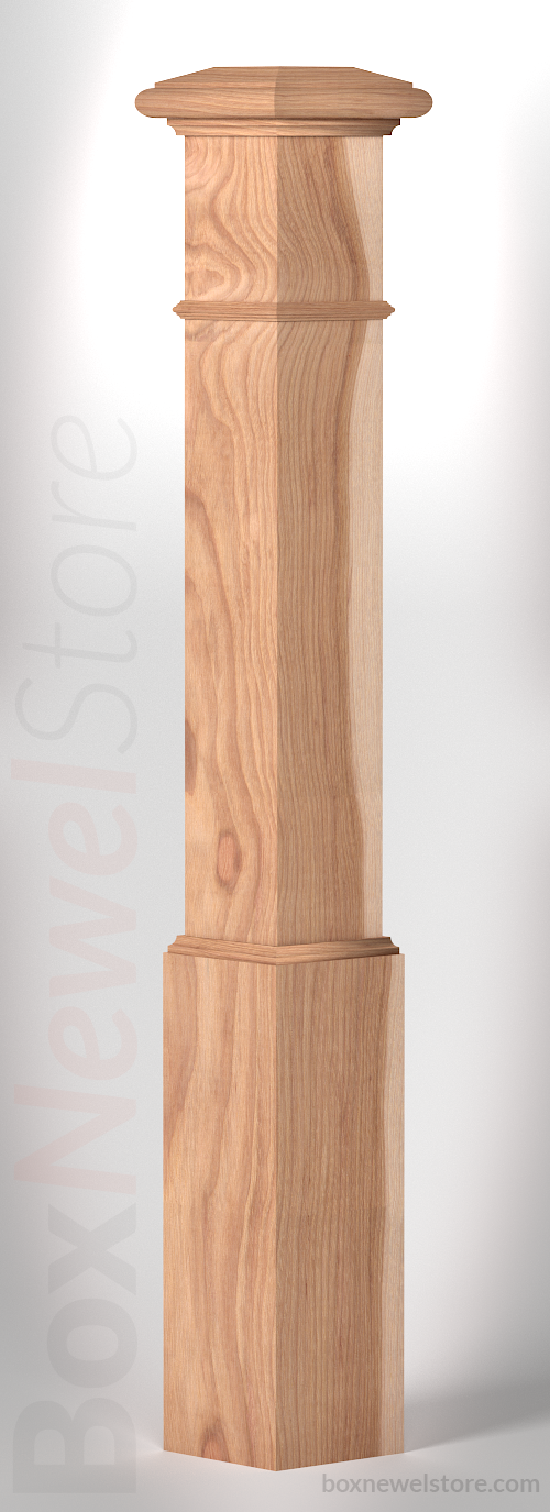 Box Newel Store Classic Hickory Box Newel, SFI Classic Cap with Cove, Pencil Mold Trimband, Loose Basewrap with Cove