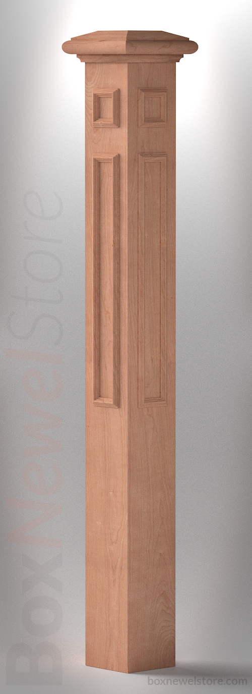 Box Newel Store Classic Cherry Box Newel, SFI Classic Cap with Cove, Upper-Lower Planton Panels