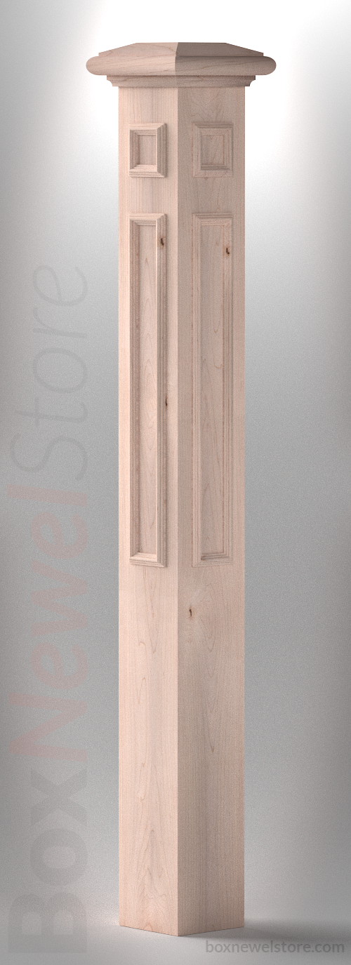 Classic Soft Maple Box Newel, SFI Classic Cap with Cove, Upper-Lower Planton Panels
