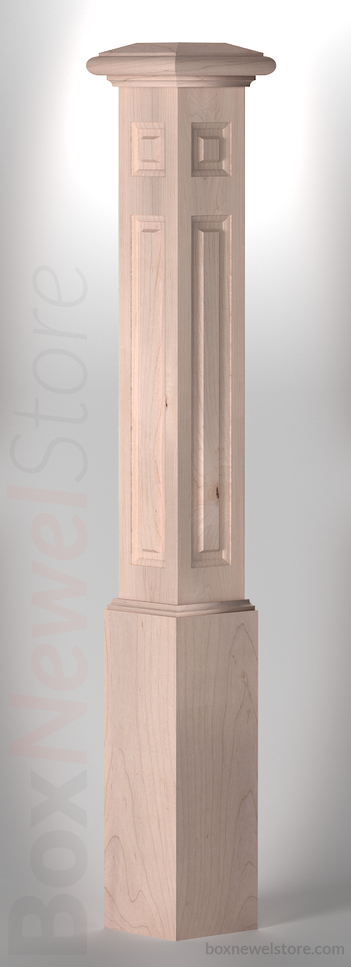 Box Newel Store Classic Soft Maple Box Newel, SFI Classic Cap with Cove, Upper-Lower Raised Panels, Loose Basewrap with Cove