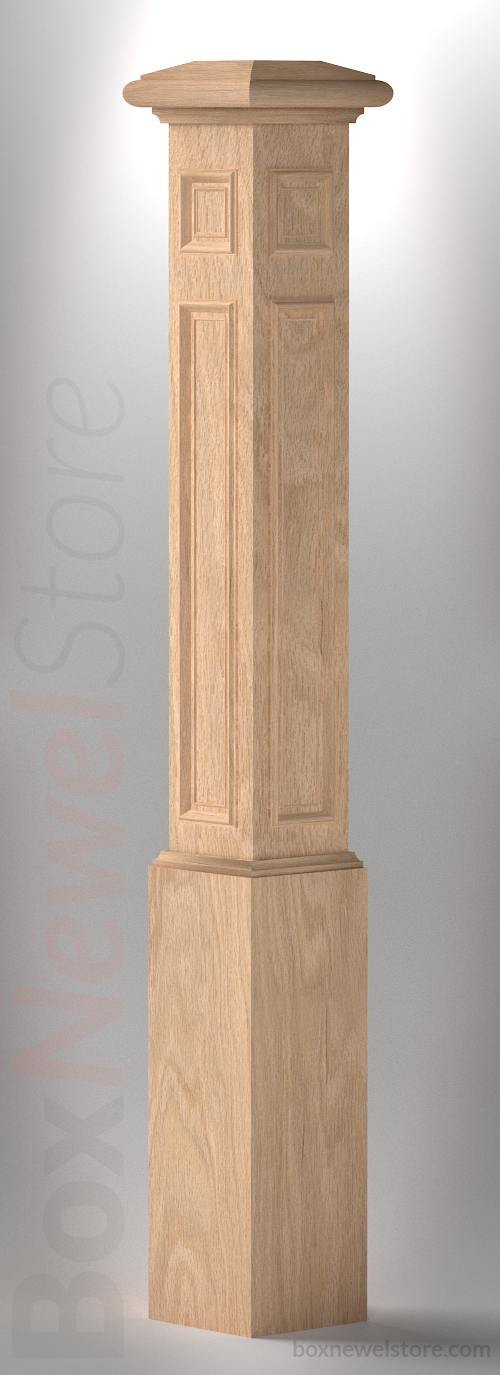 Box Newel Store Classic White Oak Box Newel, SFI Classic Cap with Cove, Upper-Lower Recessed Panels with Panel Cap, Loose Basewrap with Cove