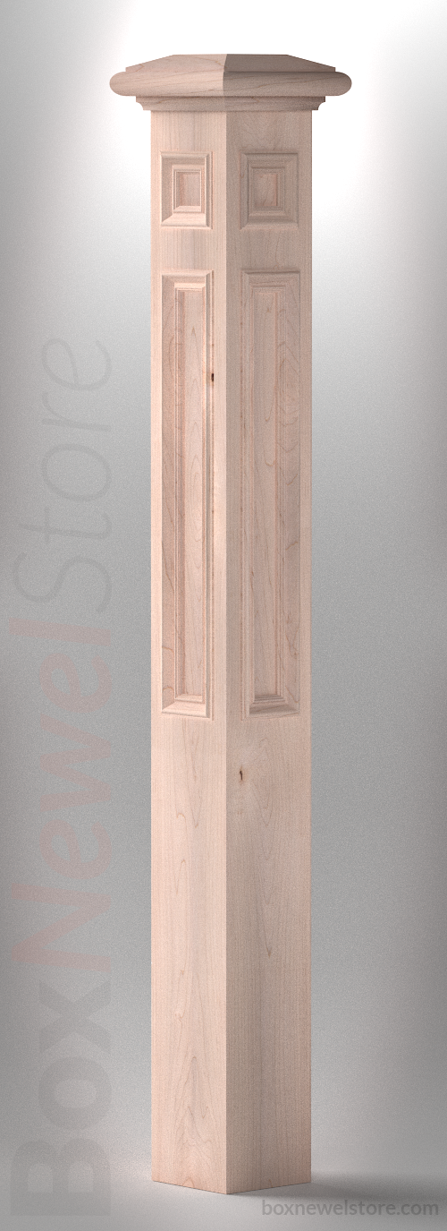 Box Newel Store Classic Soft Maple Box Newel, SFI Classic Cap with Cove, Upper-Lower Recessed Panels with Panel Cap