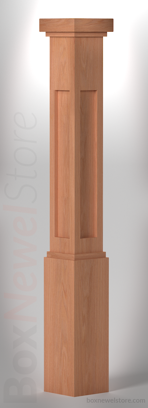 Box Newel Store Craftsman Red Oak Box Newel, SFI Craftsman Cap with cove, Craftsman Lower Recessed Panels, Loose Basewrap with Cove