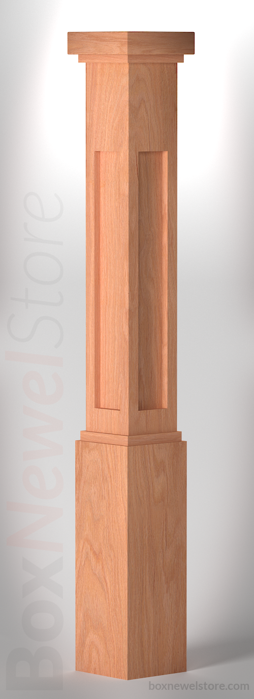 Box Newel Store Craftsman Red Oak Box Newel, SFI Craftsman Cap with Square Trim, Craftsman Lower Recessed Panels, Loose Basewrap with Craftsman Trim