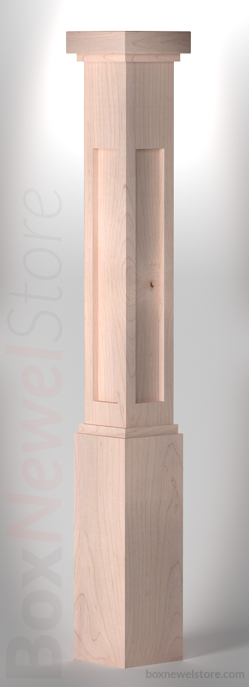 Box Newel Store Craftsman Soft Maple Box Newel, SFI Craftsman Cap with Square Trim, Craftsman Lower Recessed Panels, Loose Basewrap with Craftsman Trim
