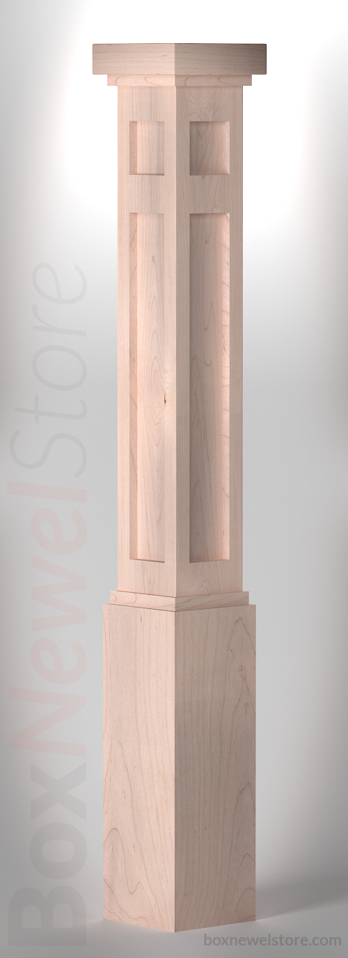 Box Newel Store Craftsman Soft Maple Box Newel, SFI Craftsman Cap with Square Trim, Craftsman Upper-Lower Recessed Panels, Loose Basewrap with Craftsman Trim