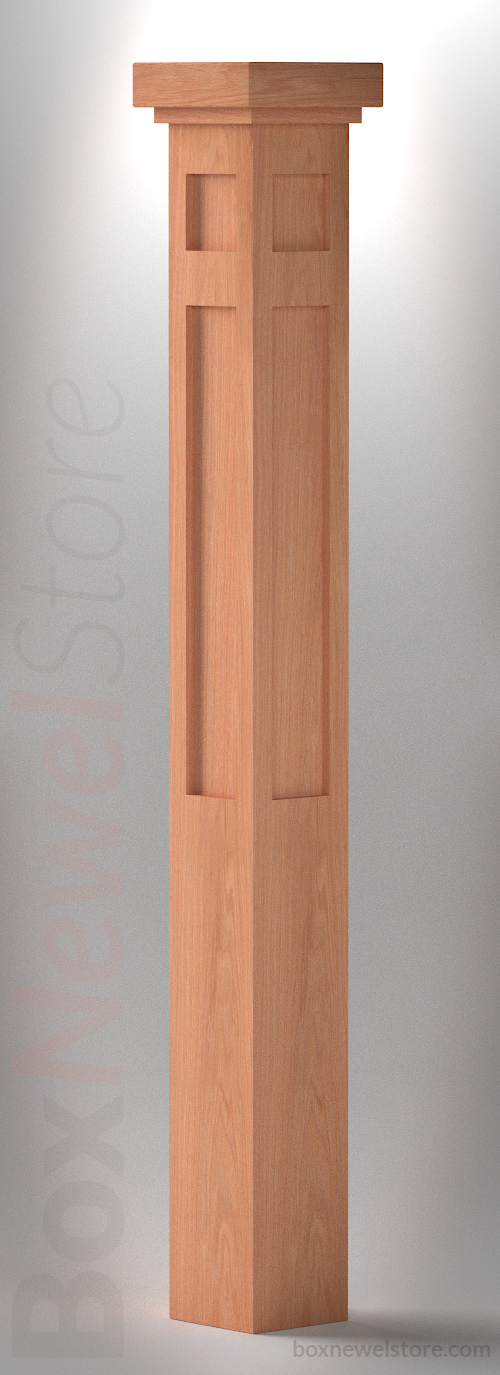Box Newel Store Craftsman Red Oak Box Newel, SFI Craftsman Cap with Square Trim, Craftsman Upper-Lower Recessed Panels