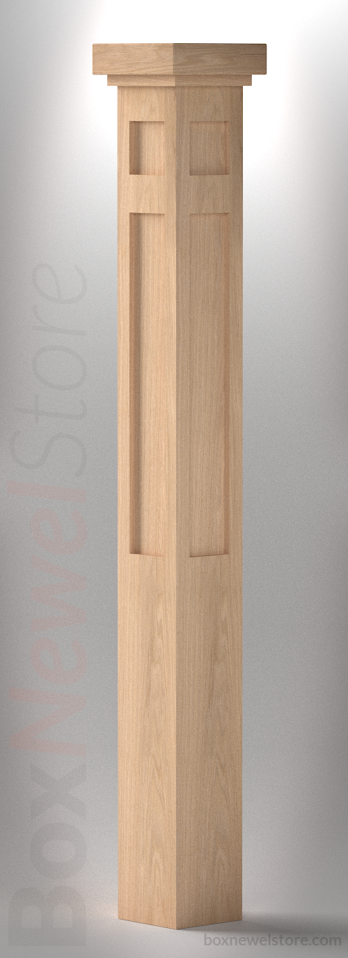 Box Newel Store Craftsman White Oak Box Newel, SFI Craftsman Cap with Square Trim, Craftsman Upper-Lower Recessed Panels