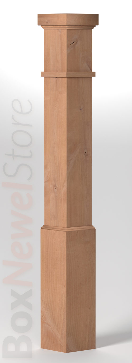 Box Newel Store Craftsman Knotty Alder Box Newel, SFI Craftsman Cap with cove, Craftsman Trimband, Loose Basewrap with Cove