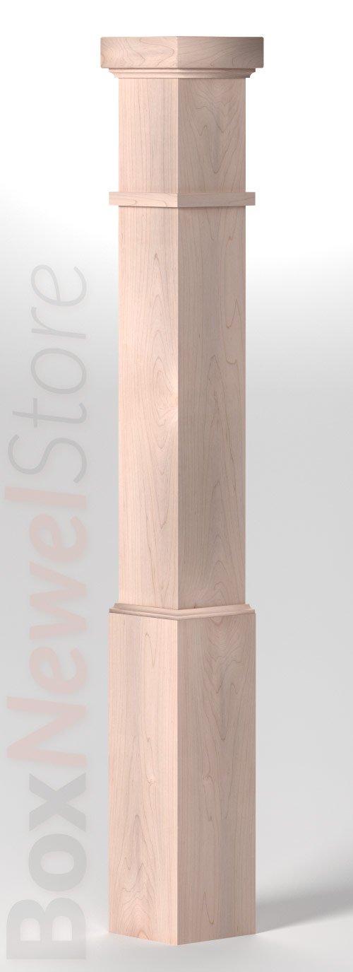 Box Newel Store Craftsman Soft Maple Box Newel, SFI Craftsman Cap with cove, Craftsman Trimband, Loose Basewrap with Cove