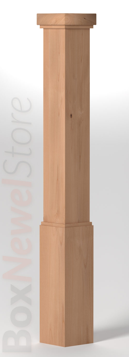Box Newel Store Craftsman Clear Alder Box Newel, SFI Craftsman Cap with cove, Loose Basewrap with Cove