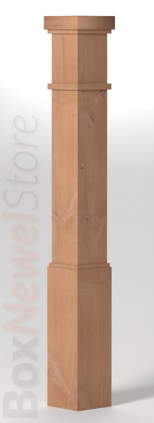 Box Newel Store Craftsman Knotty Alder Box Newel, SFI Craftsman Cap with Square Trim, Craftsman Trimband, Loose Basewrap with Craftsman Trim